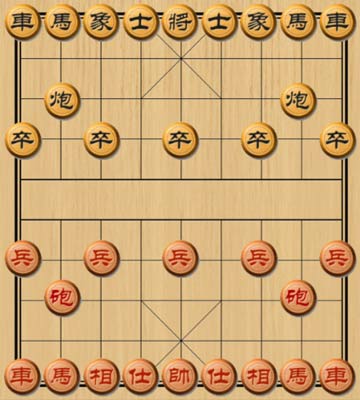摆棋顺序(从右至左):车、马、相、仕、帅、仕、相、马、车